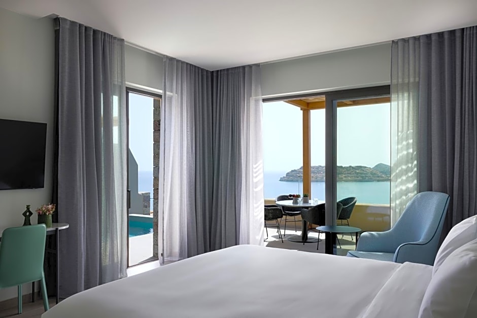 Three outdoor pools, seasonal and adults-only, crown the coastal grounds with sweeping views over Eloúnda. Private pools appear in several suites, such as Suite, Sea View, Private Pool, offering a splash-ready option for those seeking extra privacy. Guest rooms feature balconies or terraces and soundproof design for quiet nights, plus beach access with free umbrellas and loungers to soak up the sun. Free Wi-Fi and private on-site parking add convenient touches to a sun-soaked escape.